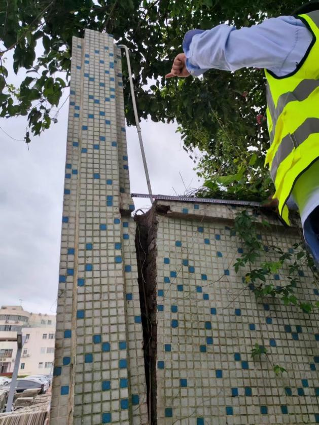 某河道上蓋房屋出現(xiàn)地面下陷,房屋墻體開(kāi)裂等情況,技術(shù)人員第一時(shí)間趕赴居民家中,針對(duì)查勘發(fā)現(xiàn)的問(wèn)題,當(dāng)即建議主管部門(mén)對(duì)危險(xiǎn)區(qū)域進(jìn)行清空圍擋,拉設(shè)警戒區(qū)域,樹(shù)立警戒標(biāo)識(shí),避免造成更大險(xiǎn)情。同日,某幼兒園內(nèi)的原塊石擋土墻上部的磚砌擋土墻出現(xiàn)變形開(kāi)裂,技術(shù)人員第一時(shí)間與主管部門(mén)、幼兒園一起對(duì)該擋土墻進(jìn)行安全排查,針對(duì)查勘發(fā)現(xiàn)的問(wèn)題,當(dāng)即建議在坡頂設(shè)立警戒區(qū)域并停止使用,并建議坡底應(yīng)采取措施可靠的安全措施,防止對(duì)人員造成傷害。技術(shù)人員同步將情況反饋給公司技術(shù)專(zhuān)家組,為相關(guān)部門(mén)后續(xù)開(kāi)展解危整治工作提供科學(xué)決策依據(jù)和專(zhuān)業(yè)技術(shù)意見(jiàn)。