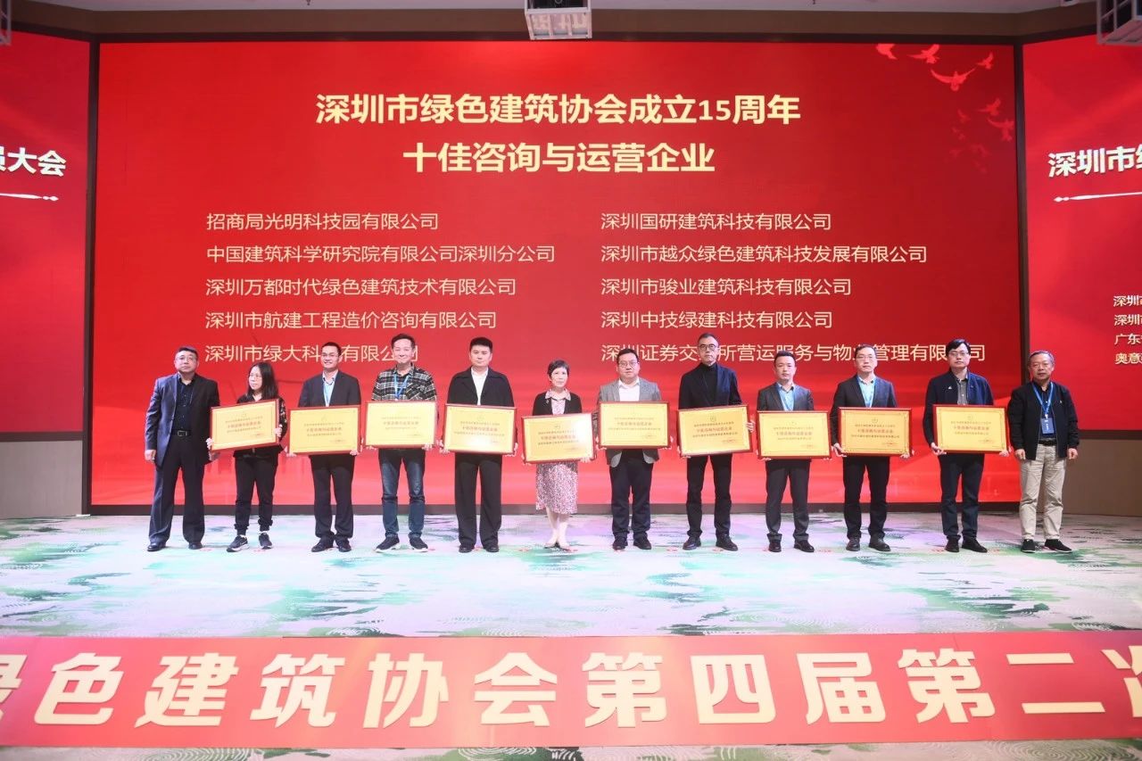 中國建研院深圳分公司榮獲深圳市綠色建筑協會“十五周年十佳咨詢與運營企業”等多重獎項